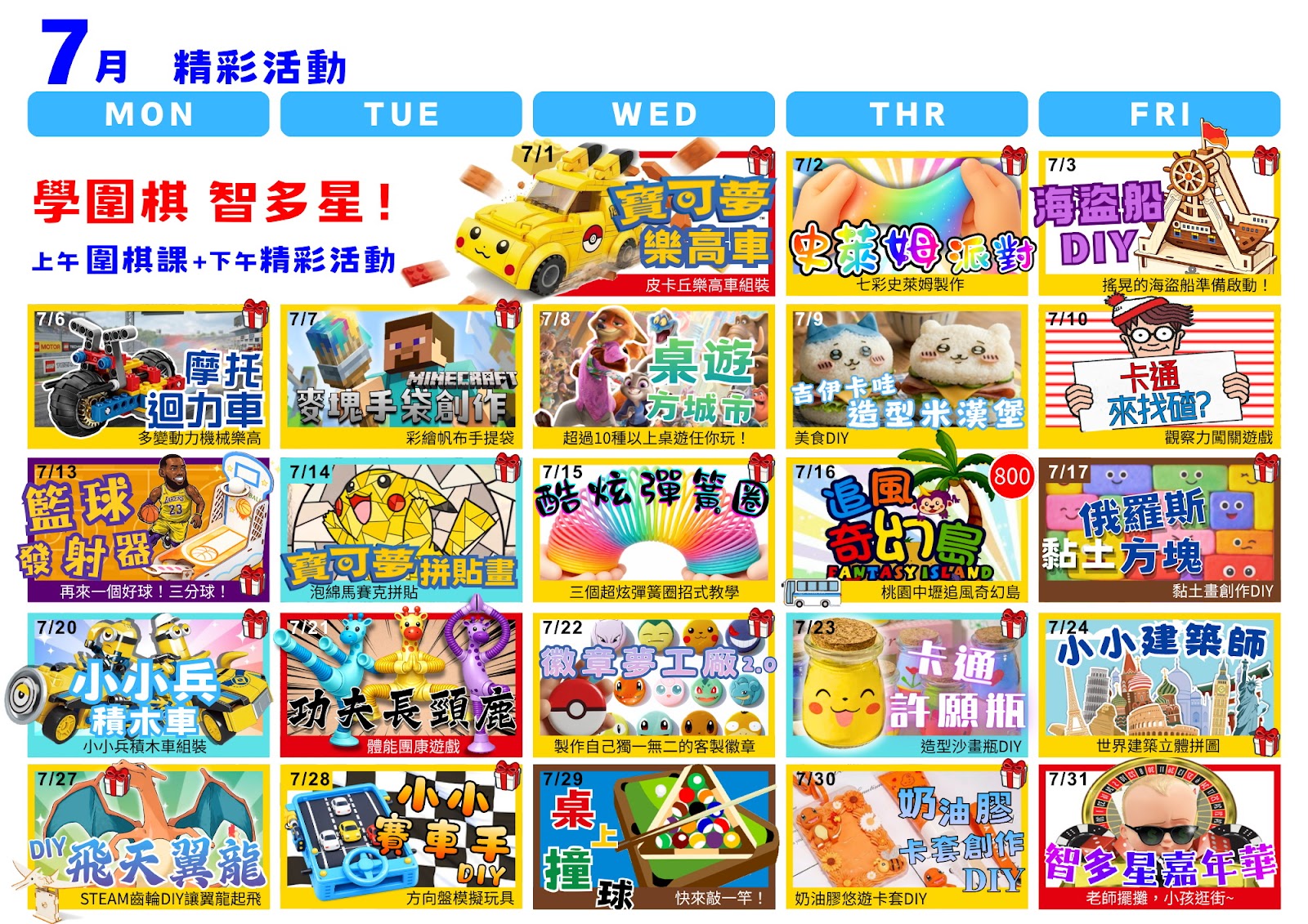 寶可夢樂高、史萊姆派對、海盜船DIY...!有別安親制式課表,精彩好玩的營隊,舊生年年回來,口碑就是最好的證明!